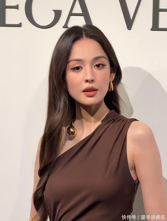 一转头看看娜扎,她穿了件深棕色的单肩镂空裙子,长长的卷发披在肩上。按理说,这种露肩的设计应该挺好看的吧?